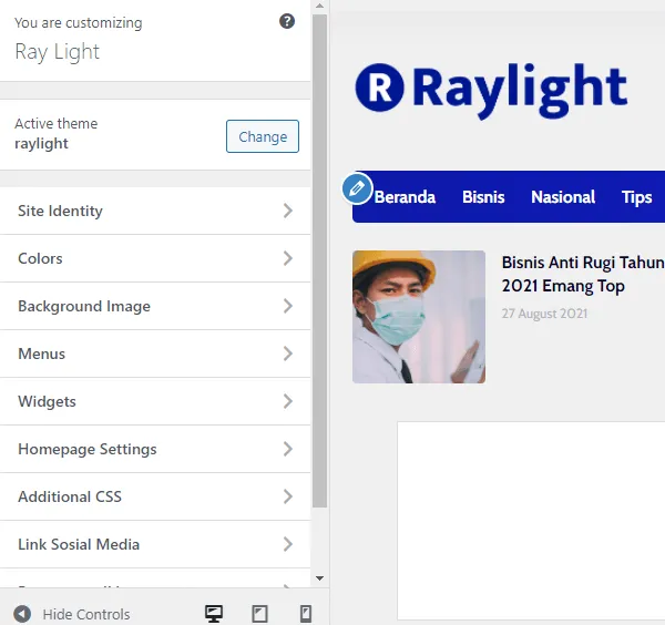 Iya, theme Raylight mudah digunakan, anda hanya permu customisasi melalui pengaturan tema anda